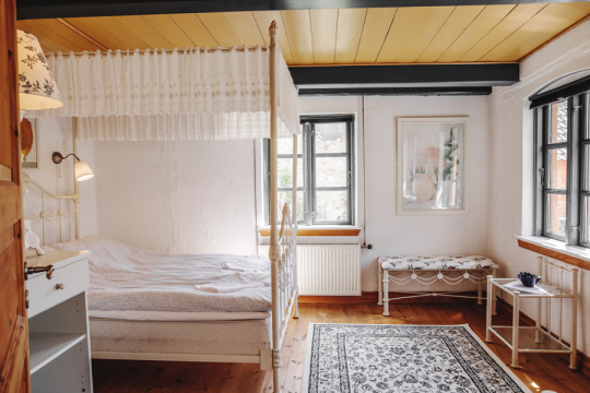 "Møllehuset" means "The Mill House" and is a cozy building with four large and tastefully decorated rooms with private shower and toilet. Each room has a double bed and the possibility of two extra beds.