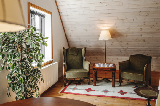 "Møllehuset" means "The Mill House" and is a cozy building with four large and tastefully decorated rooms with private shower and toilet. Each room has a double bed and the possibility of two extra beds.
